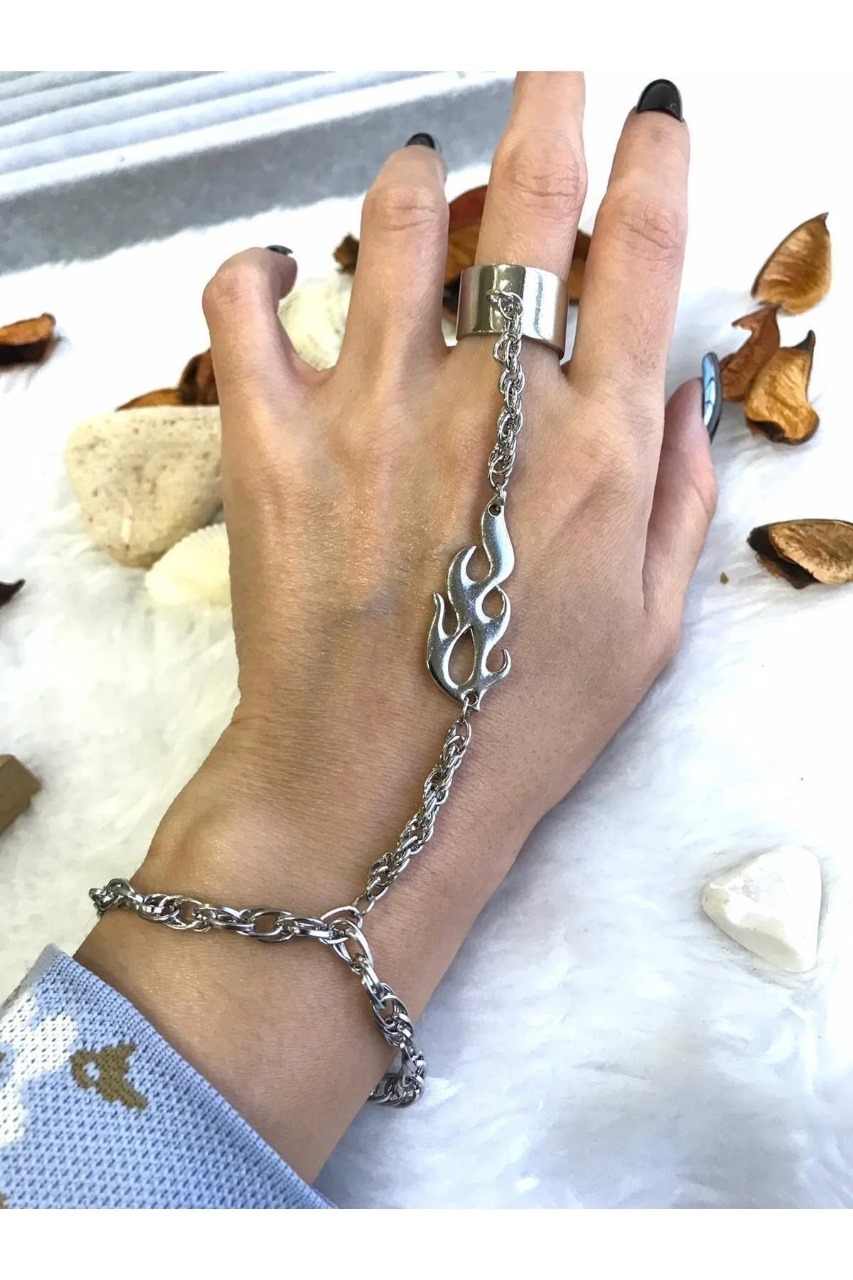 These accessories, offering a modern and trendy look with their flame chain design, highlight the style of young people. This set, designed as both a bracelet and a ring, offers different combination options, making it an ideal choice for daily use. Flame chain details that reflect the energy and style of young people make these accessories both stylish and eye-catching